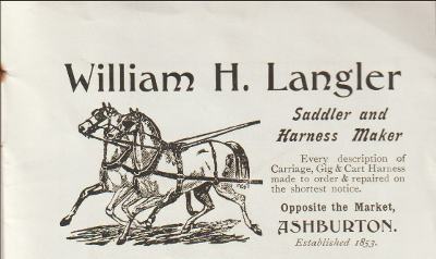 J Eales and Sons were listed in the Ashburton Business Directory in the Brixham Western Guardian in February 1903. As well as being saddle, harness and collar makers, they were also cycle agents. They operated from East Street.