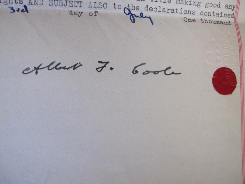 Above: Signature of Albert F Coole