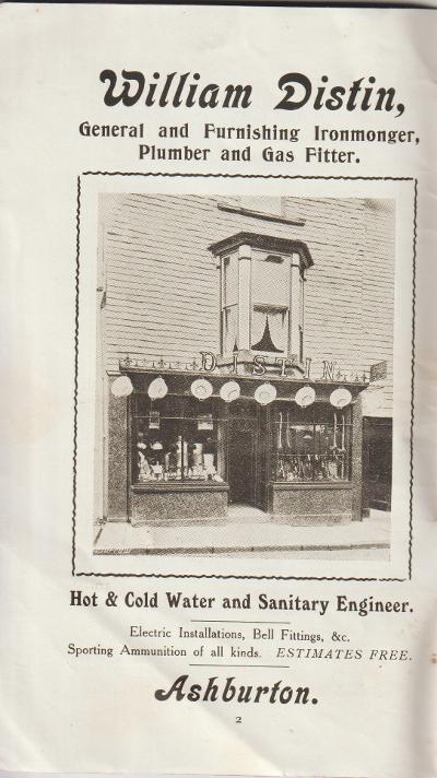 The Brixham Western Guardian listed an Ashburton business directory in January 1903: on it were Ironmongers, W Distin, North Street, established 1860, and H Boon, North Street.